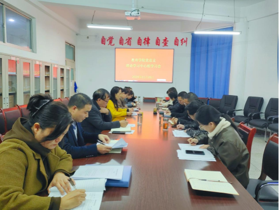 11月26日下午,太阳集团tyc33455cc党总支召开理论学习中心组学习会。党委副书记余谦旁听学习会议,理论学习中心组全体成员参加了学习交流,会议由党总支书记屈咏梅主持。