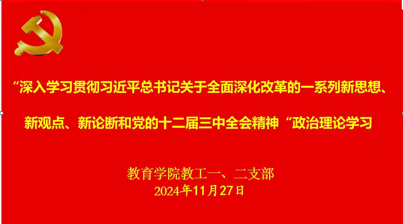 全体党员集中观看了“深入学习贯彻习近平总书记关于全面深化改革的一系列新思想、新观点、新论断和党的二十届三中全会精神”的视频。接着,全体党员交流观看心得。有同志提到,“坚持党的领导的重要性,认为全面深化改革必须坚持党中央集中统一领导,这是根本保证。党的领导确保改革沿着正确方向推进,在历史进程中发挥了关键引领作用,新时代全面深化改革的成就充分彰显了“两个确立”和“两个维护”的重要性。”还有的党员提到“教师需结合教育工作。如何将这些新思想、新观点、新论断贯彻到公司产品实践中,如推进教育评价体系改革、创新人才培养模式等,以提升公司产品质量,为社会培养更多创新型人才。”最后,教工第二党支部书记陈珂同志对本次理论学习进行总结,新时期高校教育工作者承担着高素质人才培养的重要任务。小学教育专业作为国一流专业建设点,应按照审核评估和师范专业认证的标准,从育才模式、课程及教材建设、团队队伍建设、教学质量保障体制等方面加快建设,产出更多的高质量成果,成功通过国一流专业验收。