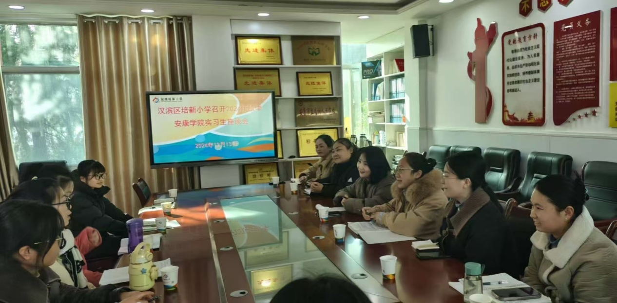 教育实习是师范生职前培养的重要环节,为进一步了解公司实习生近三个多月的实习情况,并加强与实习单位的交流合作,2024年12月13日下午,太阳集团tyc33455cc教学办公室主任李豆豆老师、小学教育系主任陈珂老师赴汉滨区培新小学看望小学教育12名实习生,并开展教育实习中期检查座谈会,会议由培新小学李静副董事长主持。