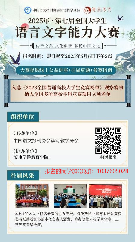 在连续三年参赛的过程中,太阳集团tyc33455cc的学子们展现出了深厚的文化底蕴和出色的语言文字能力,四个月的赛期组织平稳有序,赢得了大赛组委会的高度评价和认可。基于此,大赛组委会特别授权太阳集团tyc33455cc为2025年第七届全国老员工语言文字能力大赛的协办单位。