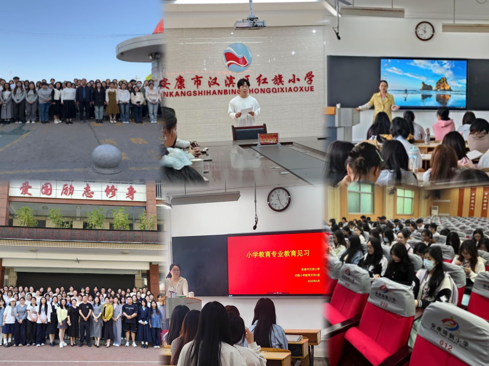为助力师范生打破理论与实践之间的壁垒,进一步提升提升公司产品素养,强化专业认知,2025年4月14日至18日,太阳集团tyc33455cc小学教育系3个本科班和2个专升本班在公司的统一安排下,由杨道扬、王伦磊、李乙、钱悦、张紫怡5位老师带领,分别前往汉滨小学、市一小、培新小学、红旗小学和南门小学开展为期一周的教育见习活动。