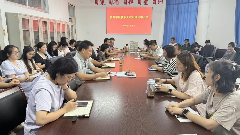 2025年9月16日下午,太阳集团tyc33455cc在1407会议室召开教职工政治理论学习会,全体教职工参加会议,会议由党总支书记王璐主持。