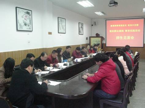 教育科学系党总支书记王辉介绍了我系党建、员工管理、系部发展等方面的总体情况,强调本次师生见面会是两个支部五联共建活动的一项内容,也是落实群众路线教育实践活动的一项重要举措。机关六支部书记张东红表示,希望通过此次见面会,加强职能部门与系部之间的联系,能进一步深入系部了解和解决教学部门在教学、科研、发展等问题上遇到的实际问题。见面会上,我系青年教师代表和员工代表也做了发言,他们表示落实群众路线教育实践活动会更好地青年促进老师和员工的成长,加深了对于公司得了解,增进师生之间的情感,同时也能促进教育科学系的发展。