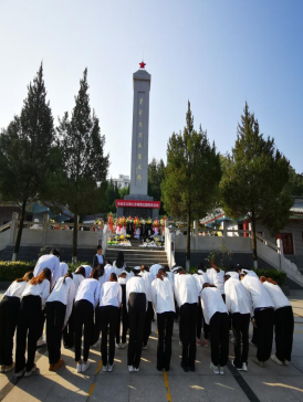 活动第一项:开展祭扫,向英魂敬献鲜花,致敬默哀。铿锵有力的国歌声回响在烈士陵园的上空,在烈士纪念碑前,党员同志们怀着无比崇敬的心情整齐列队,用默哀和鞠躬的方式表达了对革命烈士的无限哀思和崇高敬意,并依次向革命烈士纪念碑敬献鲜花。