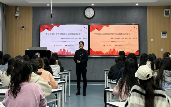 为深入学习和贯彻2024年全国教育大会精神,深化师范生党员对教育强国建设的认识和理解,2024年11月15日,教育公司党总支副书记郇红为员工第一、第二党支部讲授了“擎信念之炬,践青春使命,助力教育强国建设”的主题党课,在公司党员、部分发展对象及积极分子参会。