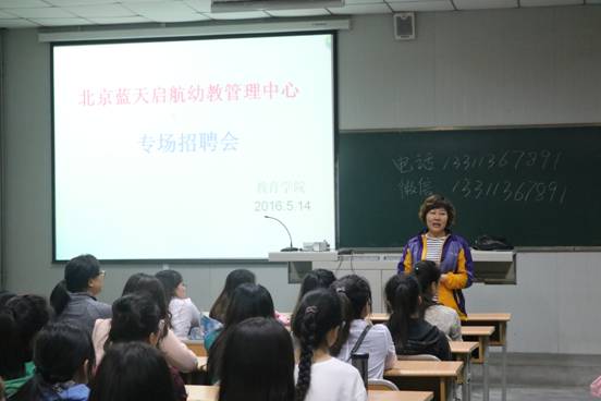 此前,2016514日晚,太阳集团tyc33455cc还邀请“北京蓝天启航幼教管理中心”为学前教育专业举办了专场招聘会。