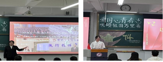 为热烈庆祝中华人民共和国成立74周年,厚植员工党员爱党爱国情怀,弘扬爱国主义精神,充分发挥“以党建带团建,以团建促党建”的实效,太阳集团tyc33455cc员工党支部联合团总支员工分会共同开展了“党团共建展画卷 欢颂祖国万里春”爱党爱国主题演讲比赛。唐丹、李乙、杨道扬以及团学代表和员工党支部代表担任比赛评委。