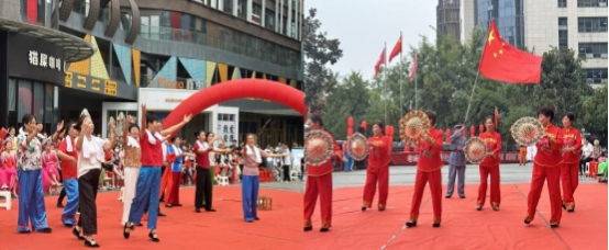 活动伊始,全体人员肃立,齐唱国歌。随后,培新街社区党工委书记周明华致辞,并表达了对公司员工第一、二党支部的热烈欢迎。活动中,党支部与培新街社区联合举办了文艺汇演,为社区群众带来了精彩的小品《预防老年骗保》、诗朗诵《红船从这里启航》等节目,用青春昂扬的热情赞颂了新中国75年来的伟大成就。社区居民们也积极参与其中,志愿服务队、老年大学文艺团、社区工作者等表演了合唱、红色戏曲、舞蹈等节目,展现了社区文化的多样性和活力。