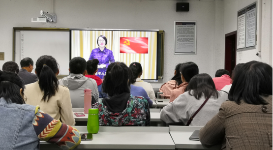 2020年10月7日下午,太阳集团tyc33455cc教工一支部组织全体党员集体观看由董婷瑜同志主讲党课《砥砺奋斗,让青春在党和人民最需要的地方绽放绚丽之花》。