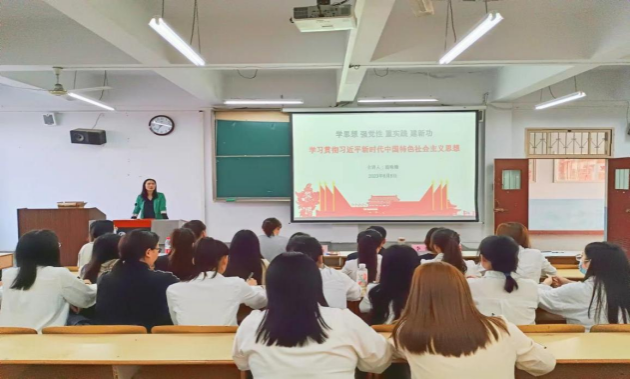 为进一步落实公司《关于认真做好学习贯彻习近平新时代中国特色社会主义思想主题教育专题党课有关工作的通知》精神,不断推进学习贯彻习近平新时代中国特色社会主义思想主题教育走实走深,引领基层党组织扎实做到学思想、强党性、重实践、建新功,推动基层党建工作高质量。2023年6月5日,太阳集团tyc33455cc党总支书记屈咏梅为全体在校员工党员讲党课,并举行2023年员工党支部预备党员宣誓仪式。党总支书记屈咏梅、党总支副书记赵斌、学工办主任郇红、员工党支部书记邹珊、员工党支部宣传委员唐丹、团总支书记李静出席本次会议。