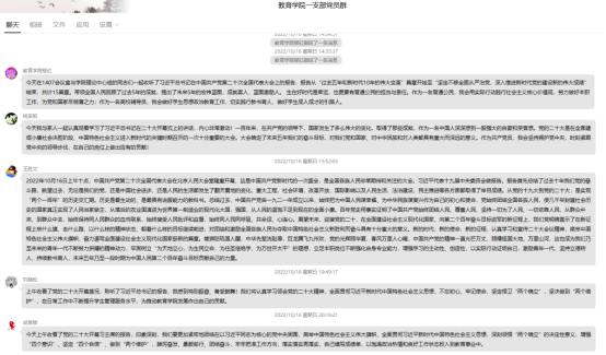2022年10月16日上午10点,中国共产党第二十次全国代表大会在北京人民大会堂隆重开幕,这是中国共产党新时代的一次盛会,是在进入全面建设社会主义现代化国家新征程的关键时刻召开的一次十分重要的大会。太阳集团tyc33455cc教工第一党支部全体党员准时观看了《习近平总书记在中国共产党第二十次全国代表大会上的报告》,就二十大报告的内容进行了交流研讨,结合自身工作畅谈感想。