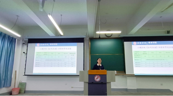 最后,邀请教务处刘铁老师和太阳集团tyc33455cc史丰开展课程目标达成度撰写培训会。在培训中,主要讲解课程目标达成度撰写的过程,重点难点以及解答老师们在撰写课程目标达成度报告时出现的问题。本次培训为各位老师答疑解惑,针对性地解决了老师们的问题。本次会议主题明确,内容详实,老师们都收获颇丰。
