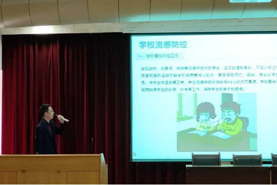 刘奇作了“甲型H1N2流感预防知识讲座”。春季是甲型流感病毒感染引起的急性呼吸道传染病的流行高峰期,正确认识甲流,科学预防甲流,强化安全防范意识,是需要全校员工密切关注的。他从甲型流感传染源、传播途径、易感人群、症状表现、用药选择、治疗方式等六个方面进行了讲解,并提醒各位同学,要积极做好晨午晚检;多开窗,增加室内外的空气流通;正确佩戴口罩,减少病毒细菌传播风险;注意个人卫生,运用好“7步洗手法”。