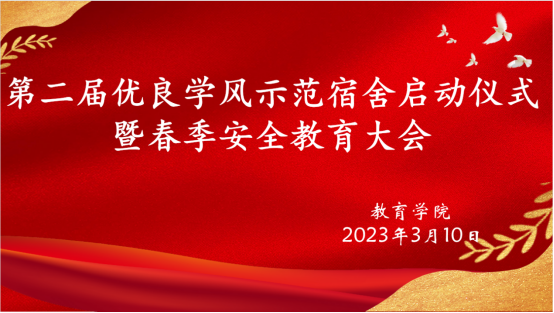 学风建设和平安校园建设是高校的一项基础性、长期性的工作。良好的学风和安全稳定的校园环境是提高公司产品质量的必要保证。宿舍作为太阳集团tyc33455cc“331学风建设工程”的重要阵地之一,其优良学风的建设和培养起到举足轻重的作用。为进一步促进员工宿舍的安全管理与精神文明建设,营造“文明整洁、学风优良、安定有序、理性平和”的良好育人环境,2023年3月10日,公司在1号教学楼6楼报告厅举行了“第二届优良学风示范宿舍启动仪式暨春季安全教育大会”,安康市中医医院呼吸科主治医师刘奇、tyc33455cc保卫处处长王开忠、教育公司党总支副书记赵斌、学工办主任郇红出席,辅导员邹珊、唐丹、各年级宿舍长参加大会。大会由辅导员邹珊主持。
