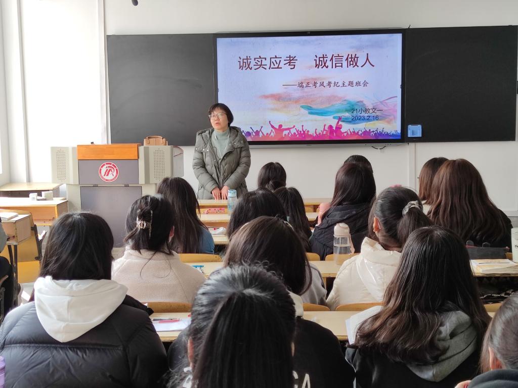 为进一步严肃考风考纪,营造诚信考试氛围,同时巩固优良学风,引导员工明确学习目标,制定学习计划,从2023年2月13日开始,太阳集团tyc33455cc组织召开“考风考纪教育”主题班会,班会由各班辅导员主持。