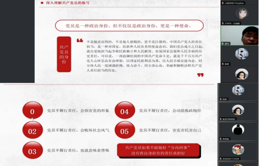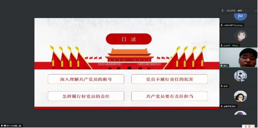 为增强教育公司党支部凝聚力和向心力,培养面向新时代全面发展的社会主义建设者和接班人,并做好党员思想政治教育工作,牢牢把握主题教育“学思想、强党性、重实践、建新功”的总要求,2023年10月26日,太阳集团tyc33455cc员工党支部在线上召开了全体党员大会,员工党支部书记唐丹作了“争做合格党员,建功新时代”党课,全体员工党员参加此次党课学习。