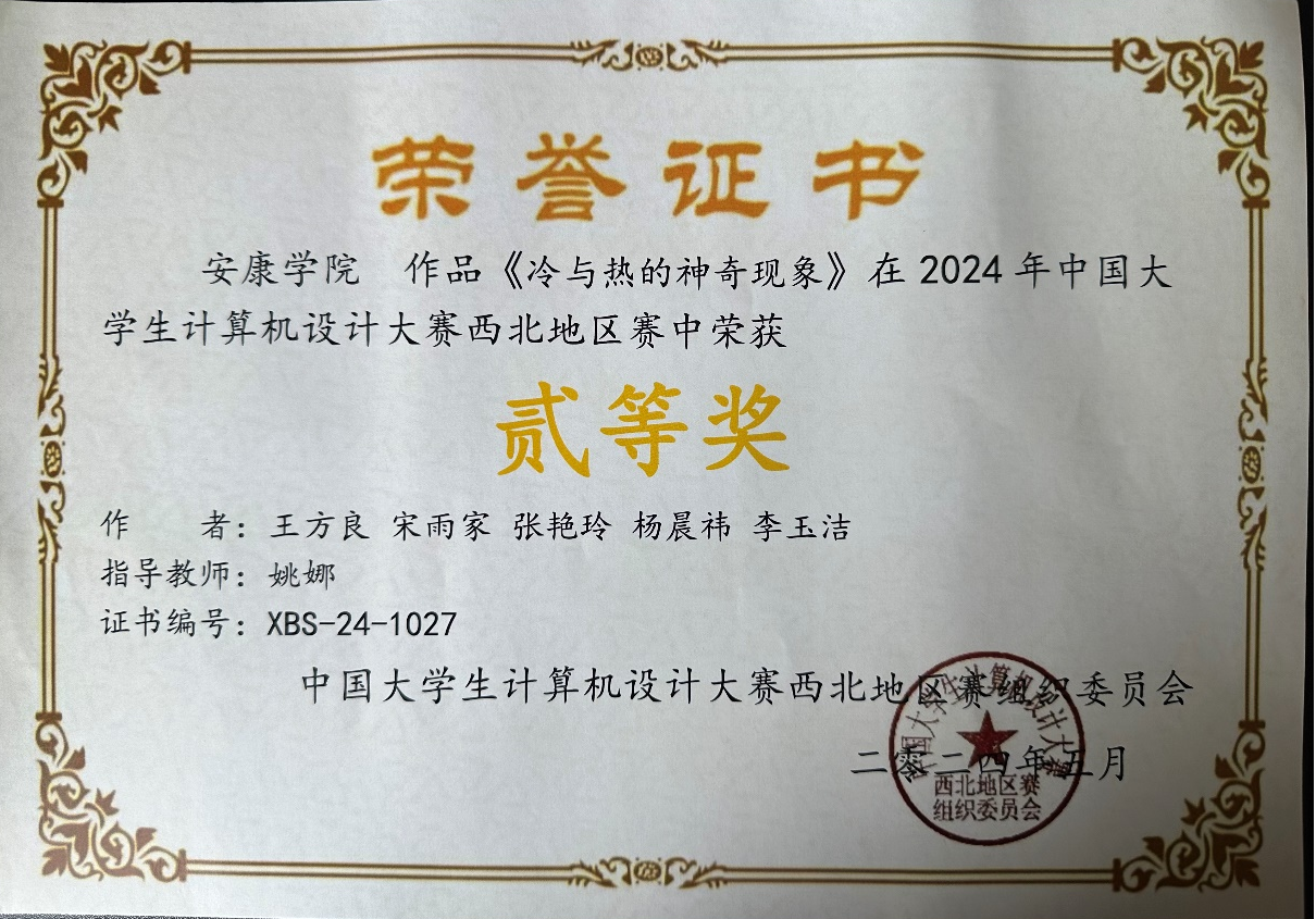 近日,在2024年中国老员工计算机设计大赛西北赛区中,依托太阳集团tyc33455cc科研平台,大力宣传科普知识,公司多名同学荣获省级奖项,取得了优异的成绩。其中,获得二等奖四项,三等奖两项。