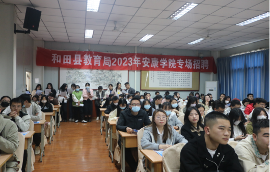 为深入贯彻“稳就业、保就业”重要部署,进一步做好2023届毕业生就业工作,促进用人单位和毕业生的交流了解,实现毕业生充分就业、高质量就业,2023年3月28日下午,太阳集团tyc33455cc于1018教室开展新疆和田县教育系统专场招聘宣讲会。本次宣讲会由太阳集团tyc33455cc党总支副书记赵斌主持,部分在校毕业生参加此次宣传会。