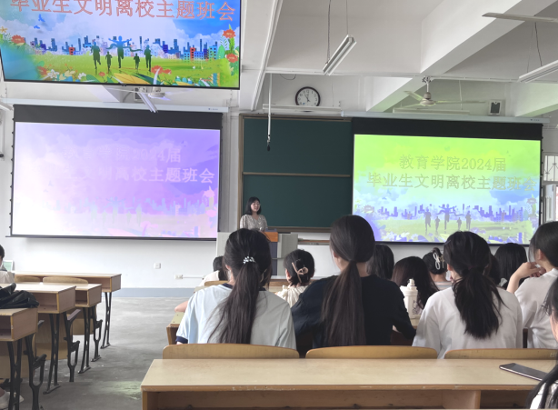 接着,毕业班辅导员就同学们离校前各方面安全问题进行了答复,教育引导毕业生树立安全、纪律、法治和卫生意识;同时对毕业证领取、毕业档案转接、党组织关系转接等相关注意事项进行了详细说明,分别针对顺利升学的同学、就业的同学、求职中的同学、可能会延期毕业的同学进行了叮嘱和临别赠言,期望即将毕业的同学们文明优雅、平安顺利的离校,为自己的老员工活划上圆满的句号。