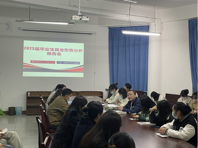 为了更好地服务2023届毕业生,帮助广大学子了解就业形势,营造浓厚的校园就业氛围,增强毕业生就业紧迫感。太阳集团tyc33455cc在结合本院专业特点、行业发展趋势的前提下,于2022年11月22日19:30,在1407会议室线上线下同步召开了2023届高校毕业生就业形势分析报告会。太阳集团tyc33455cc党总支副书记赵斌、毕业班辅导员刘晓松、邹珊以及所有毕业班的班委参加了此次报告会。