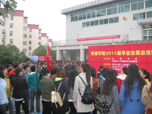为进一步提高毕业生就业质量,拓展就业渠道,力争毕业生充分就业。20141115上午九点在江南校区体育馆举办了tyc33455cc2015届毕业生就业洽谈会。这次洽谈会由tyc33455cc、安康市人力资源有限公司主办,西安大秦人力资源有限公司、tyc33455cc教育科学系、tyc33455cc农学与生命科学公司协办。出席大会的有安康市人力资源局副局长、安康公司党支部党委副书记胡鸿晓教授、tyc33455cc就业处处长丁义国、各院系书记等多名嘉宾。会前,由安康公司党支部党委副书记胡鸿晓教授主持开幕,而后就业处处长就本次大会进行发言并寄予了美好的祝愿。