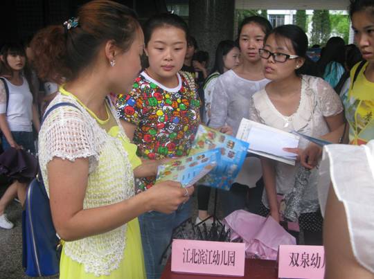 为了更好地拓宽毕业生就业渠道,落实于培养应用型人才培养目标,提高员工就业能力。2015612日教育科学系在江南校区一号楼大厅举行专场招聘会。西安爱儿堡幼儿园、安康高新第二幼儿园等二十九家用人单位来我系招聘人才,共提供就业岗位180个,我系2015届毕业生和2016届毕业生共计300余人参加了本次招聘会。