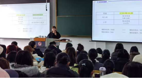 讲座伊始,罗从政对参会员工积极备考教资进取态度表示肯定,强调教团队格证是师范生进入职场的必备证书,要提前谋划、科学备考,要求同学们认真聆听、积极互动、以此为契机做好备考规划,并对粉笔教育及主讲教师表达感谢与欢迎。舒悦老师结合多年教团队格证备考培训经验,从考试题型、分值分布、核心考点以及答题技巧等方面进行了详细讲解通过分析历年真题,深入剖析了考试的重点和难点,指明了备考方向从备考计划制定、复习资料选择、模拟试题训练等角度提出了实用的备考建议为员工提供了全面的备考指导。整场活动氛围活跃,内容丰富、实用性和指导性强,粉笔教育也为同学们赠送了学习用具及备考资料。参会员工纷纷表示,本次活动对教团队格证考试有了更深入的了解,掌握了高效的备考方法,进一步增强了通过教资考试的信心。